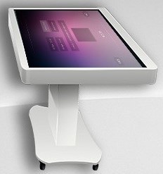 Металлический интерактивный стол с возможностью работы только в горизонтальном положении, диагональ экрана 32”, инфракрасная технология сенсорного экрана на 6 касаний, FullHD 1920*1080, контрастность 1000000:1, яркость 350 кд/м, встроенный компьютер Intel Pentium 1.6 ГГц, ОЗУ 4 ГБ, Intel HD Graphics 5500, SSD 64 Гб, WI-FI, 2 выхода USB 3.0 и выход на наушники, OC Win 10, мощность звука 20 Вт, энергопотребление 65 Вт, столешница 775*465*75 мм, высота 700 мм, цвет на выбор.