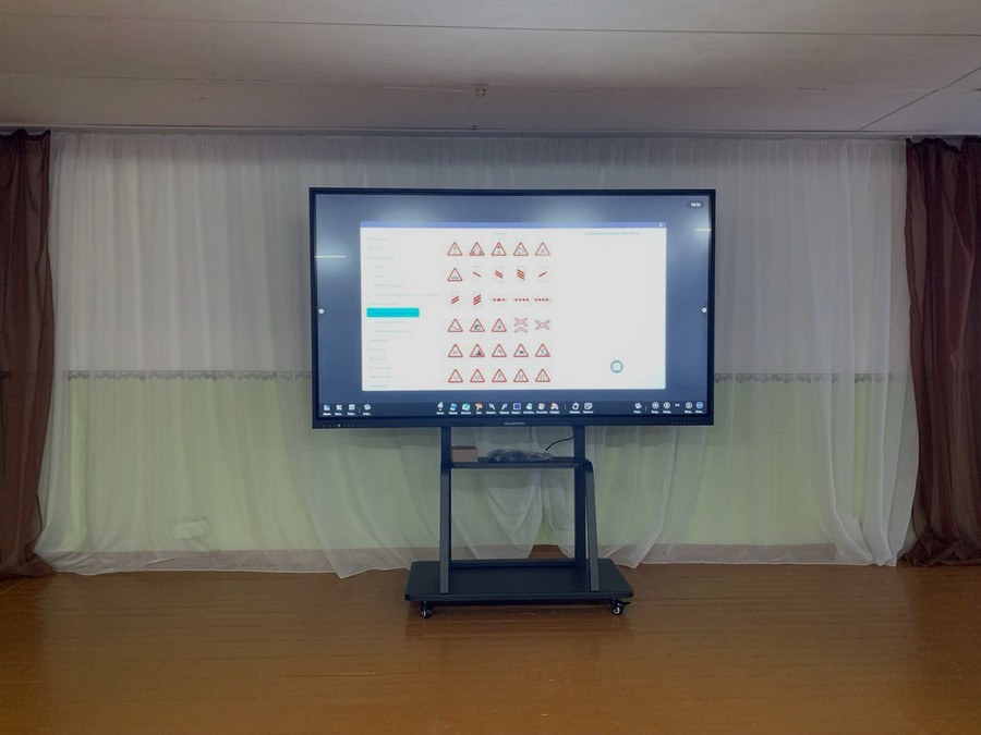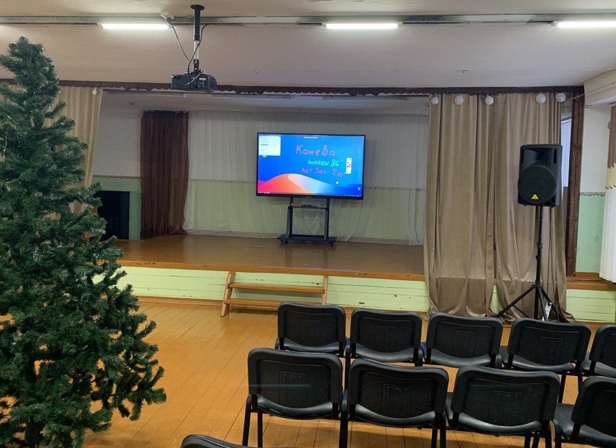 В актовый зал школы успешно поставлен интерактивный комплекс Lumien с диагональю 86” на мобильной стойке.