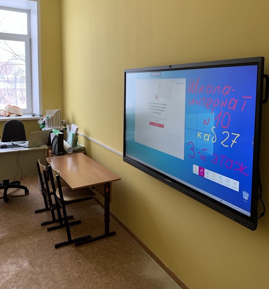 В школе установили интерактивную панель Lumien 75" - это большой сенсорный экран, который объединяет функции доски, компьютера и мультимедийного центра.