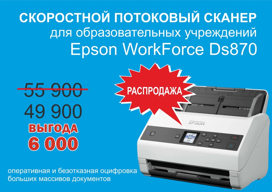 Скоростной потоковый сканер Epson WorkForce DS-870 С ВЫГОДОЙ 6000 р.!