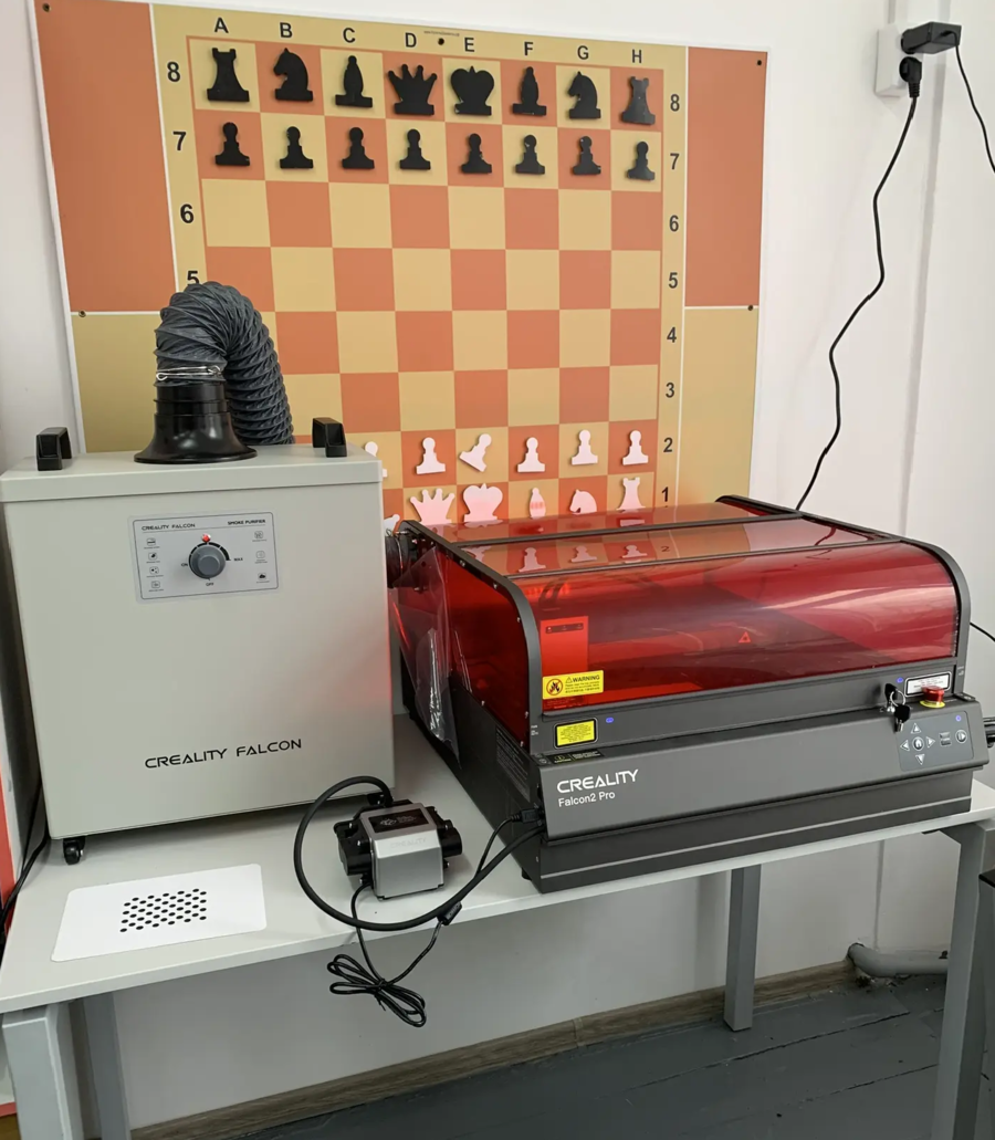 Поставили в школу настольный лазерный гравер Creality Falcon 2 Pro 60W (Falcon2 Pro) в комплекте с вытяжкой для лазерных станков Creality Falcon YW200 (YW 200).