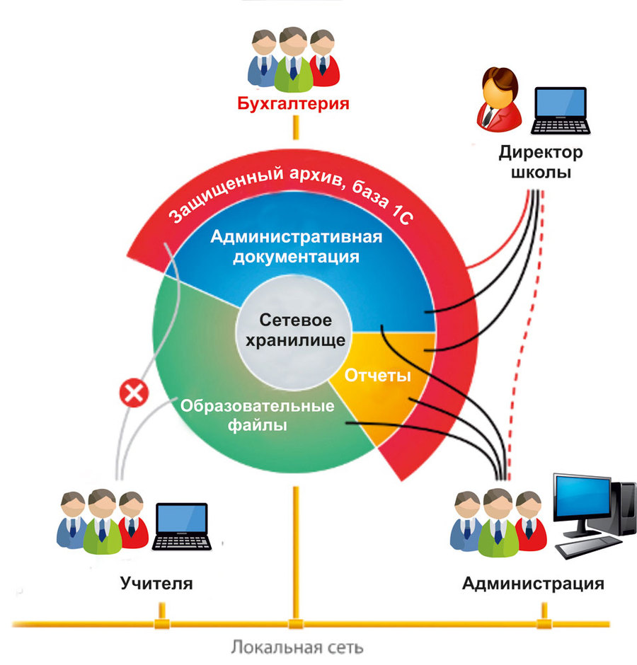 Доступ к общим отчетам, презентациями и необходимым документам предоставляется сетевым хранилищем из любого кабинета в учреждении, и даже из дома, что повышает эффективность организации образовательного процесса.